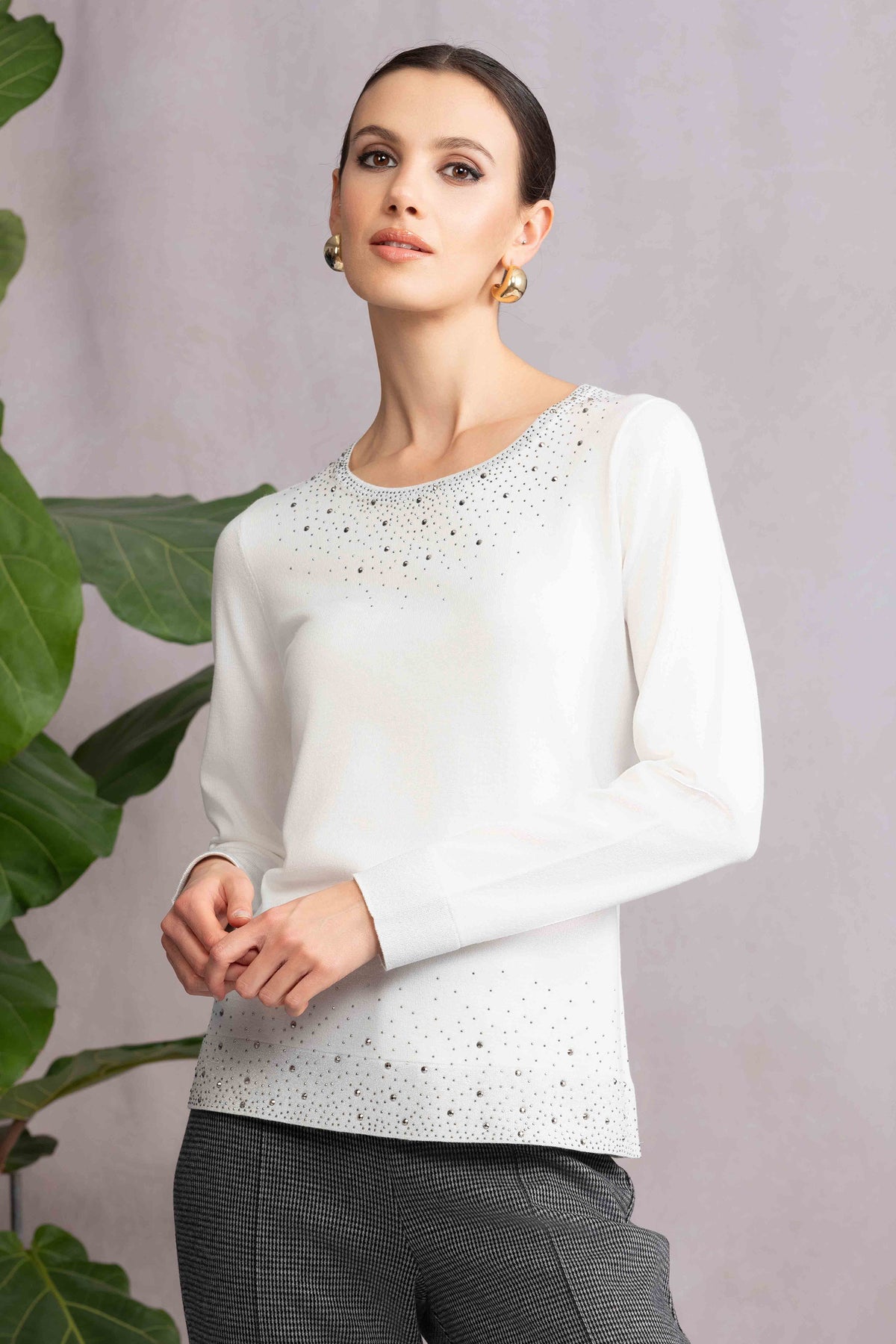 LS SWEATER TOP WITH RHINESTONE DETAILS