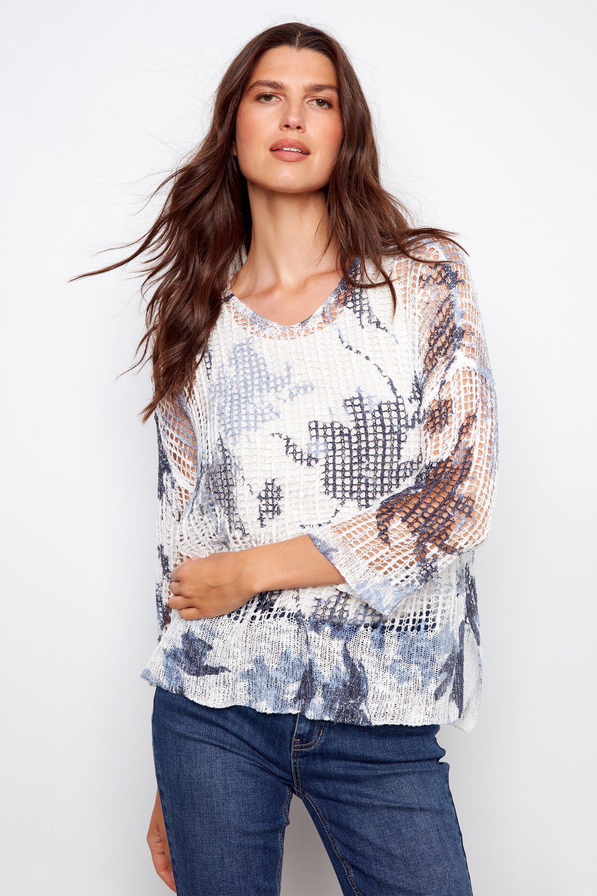 This overlay crochet top is the perfect piece to bring to the beach or wear out on the town! It features a V-neckline, relaxed fit, floral print and three quarter length sleeves and a solid band around the cuffs and hem to elevate any spring or summer look!