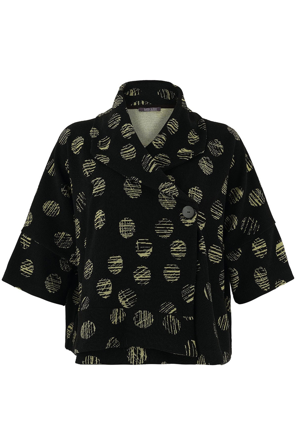 The Sketching Dots Jacket combines casual ease with refined design, featuring a half-loose dolman sleeve silhouette for fluid movement. Its lightweight knit fabric offers breathable comfort, while the open front with button closure adds versatile styling options. This sweater-style jacket drapes elegantly for a sophisticated yet relaxed look.