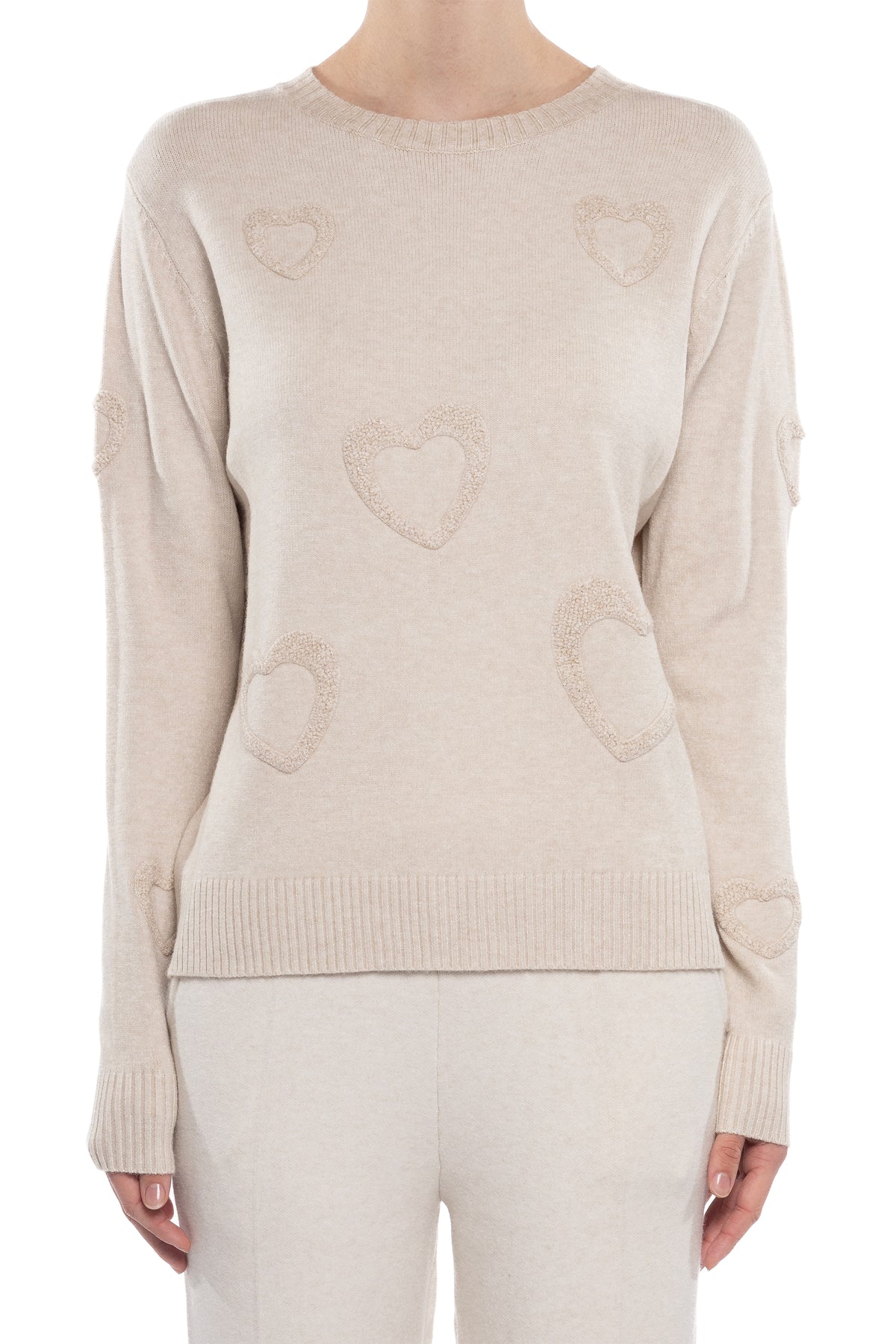 LS SWEATER TOP WITH TONE ON TONE HEARTS