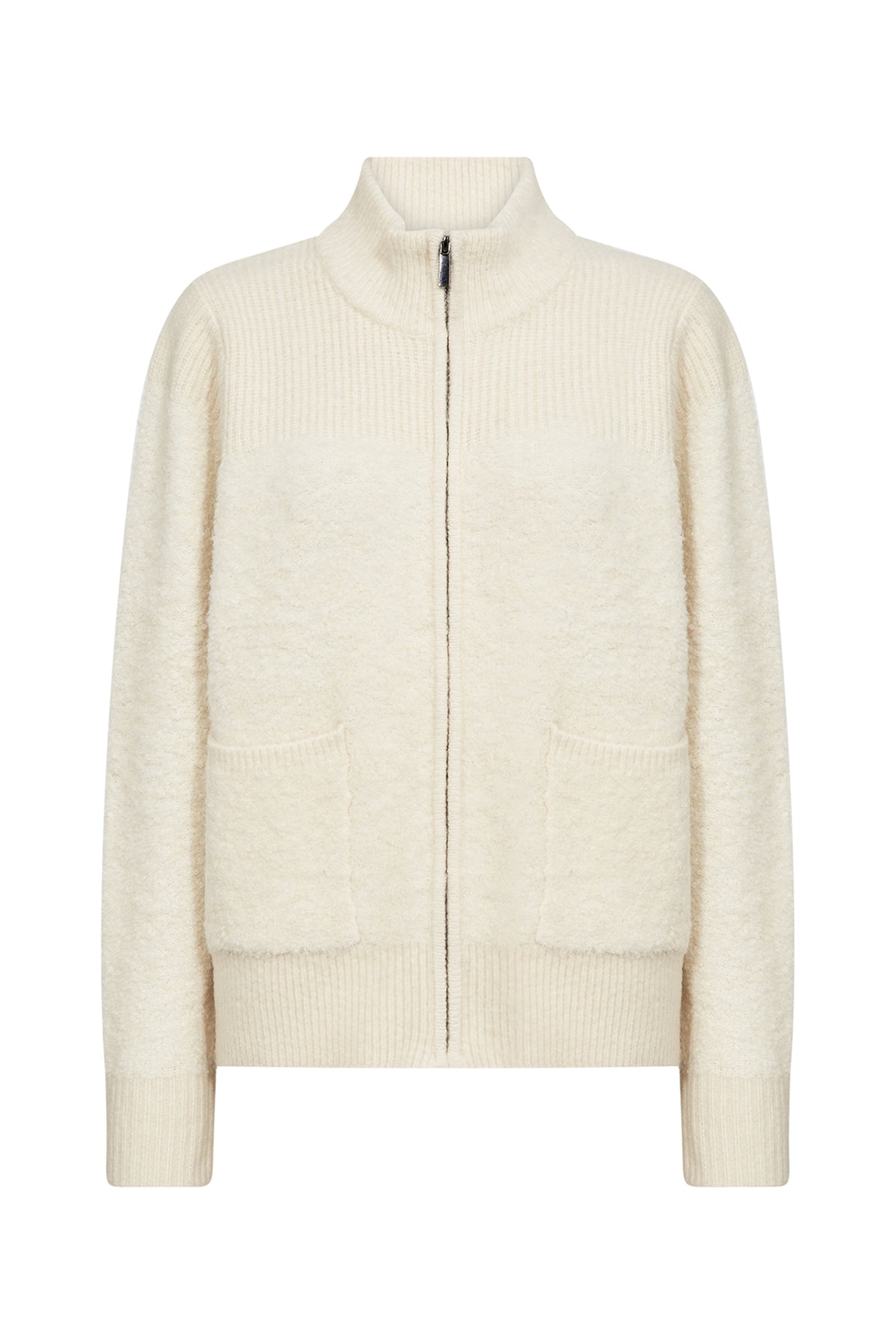 Wrap yourself in nice coziness with the Boucle Zip Cardigan. Made from soft woven boucle fabric, it offers warmth without heaviness, perfect for casual days. The front zipper, contrast ribbed cuffs and hem add a fun twist while keeping the look fresh and classic. Crafted with eco-friendly materials, this top lets you feel good inside and out.