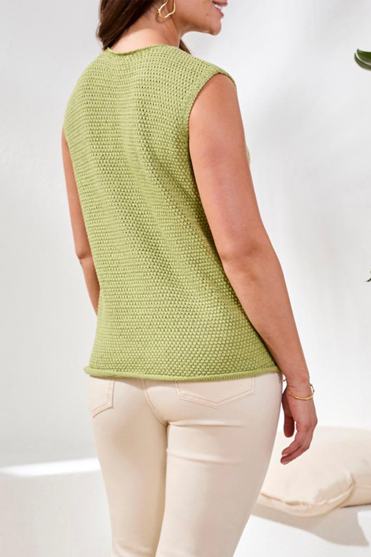 Elevate your wardrobe with this refined sleeveless vest, crafted from soft tape yarn knit for a distinctly textured aesthetic. The lightweight, breathable construction ensures comfort throughout the day, while functional pockets add practical elegance. Its sleek silhouette strikes the perfect balance between contemporary style and understated sophistication, making it an effortless layering piece or standalone statement.