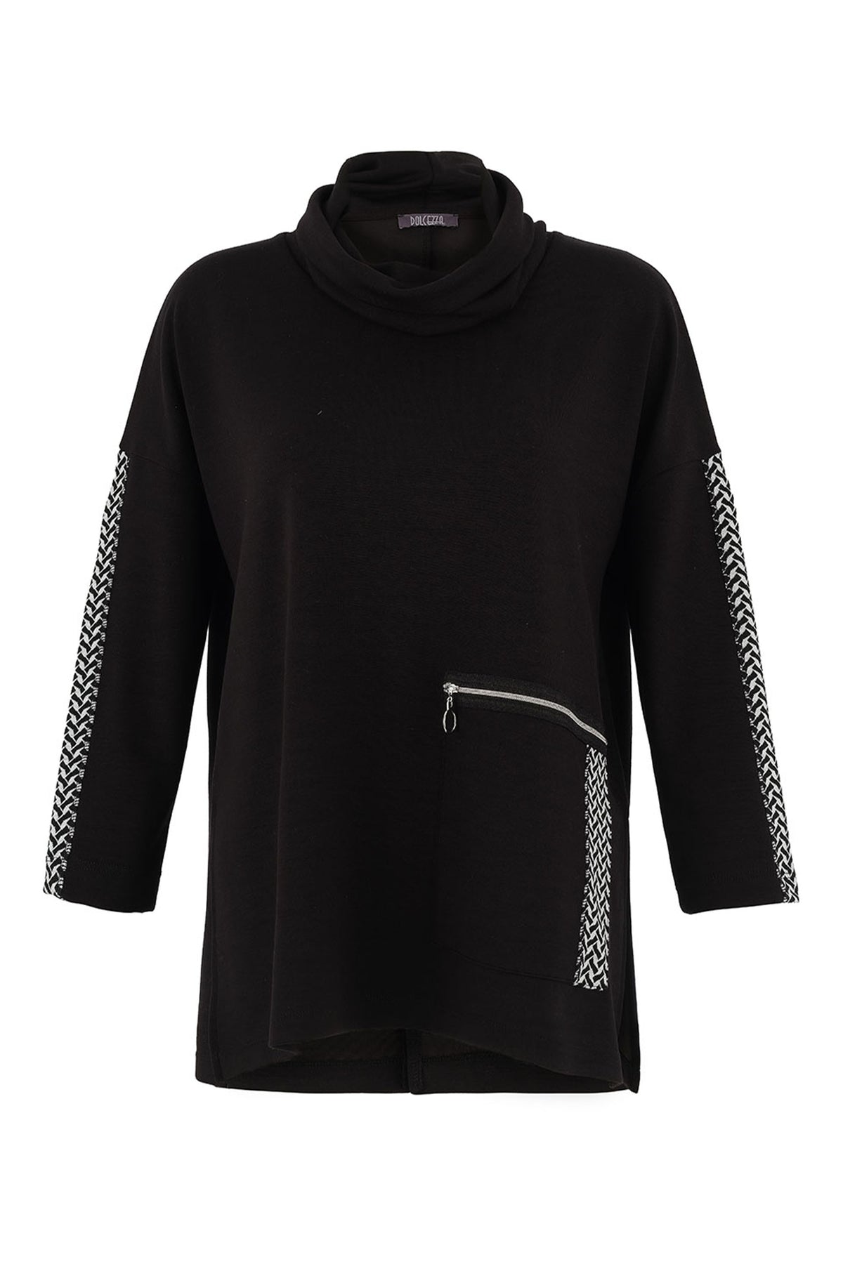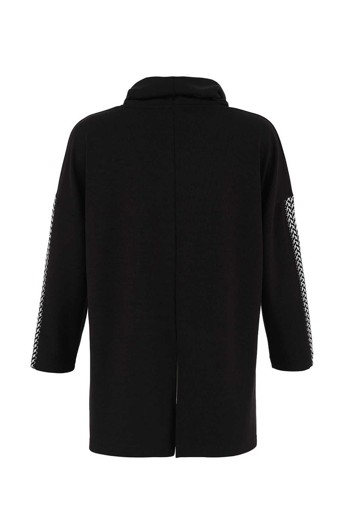 BLACK WHITE COWL TUNIC WITH HERRINGBONE TRIM