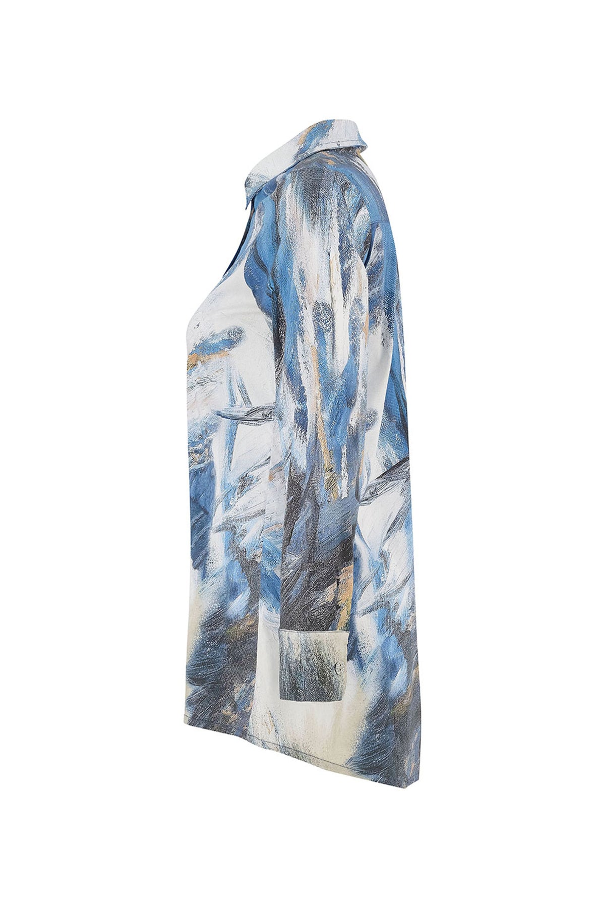 Elevate your wardrobe with The Storm Hi Lo Blouse, crafted from a lightweight cotton blend for comfort and breathability. Its A-line silhouette and contrast hi-lo hemline create an effortlessly elegant shape, while the blue brushstroke painting print adds an artistic touch. Finished with a classic collar and button cuffs, this blouse combines timeless style with subtle contemporary details for a refined, sophisticated look.