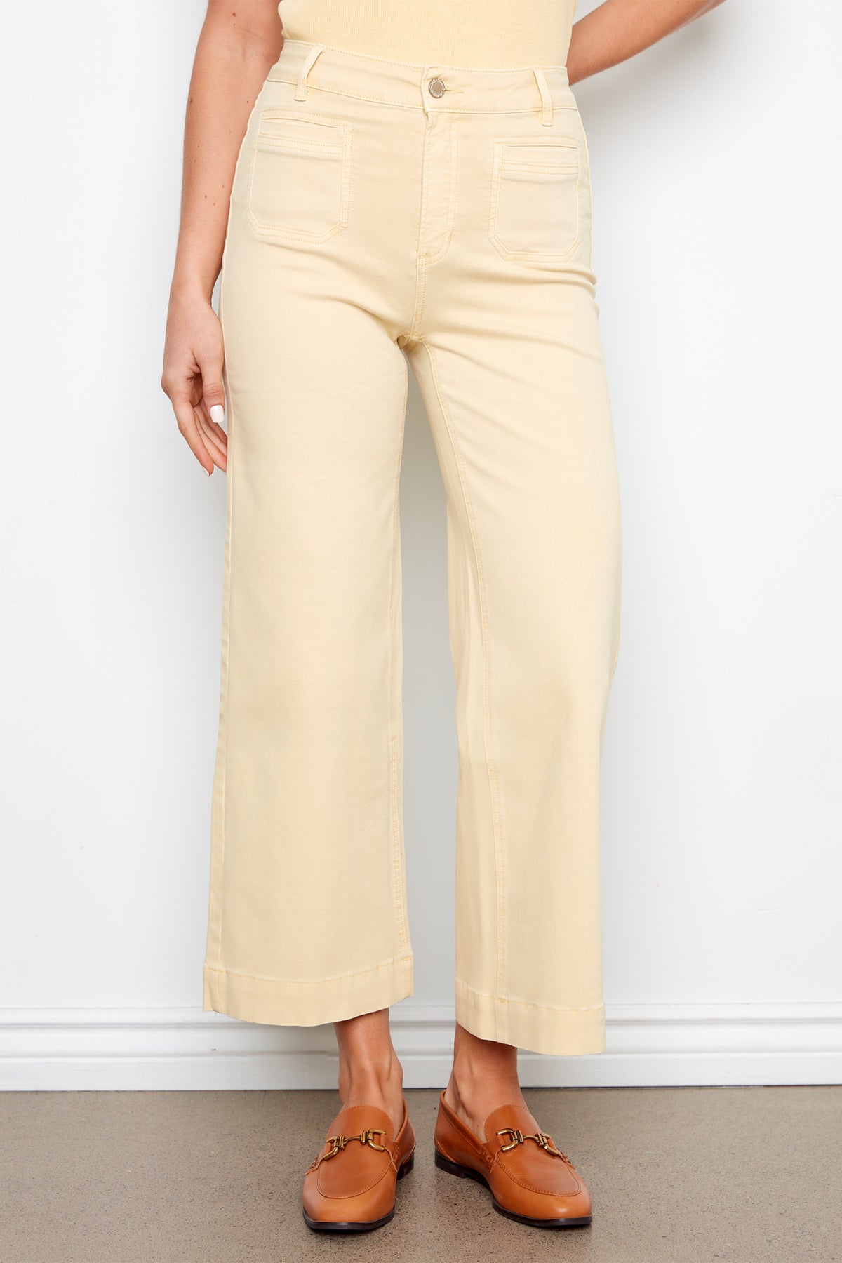 These Patch Pocket Flare Jeans are made from stretchy twill fabric for ultimate comfort. The modern flare hem design adds a stylish twist to the classic twill pant. With a regular rise and front patch pockets, these jeans are both functional and trendy. Elevate your wardrobe with these versatile and chic jeans.