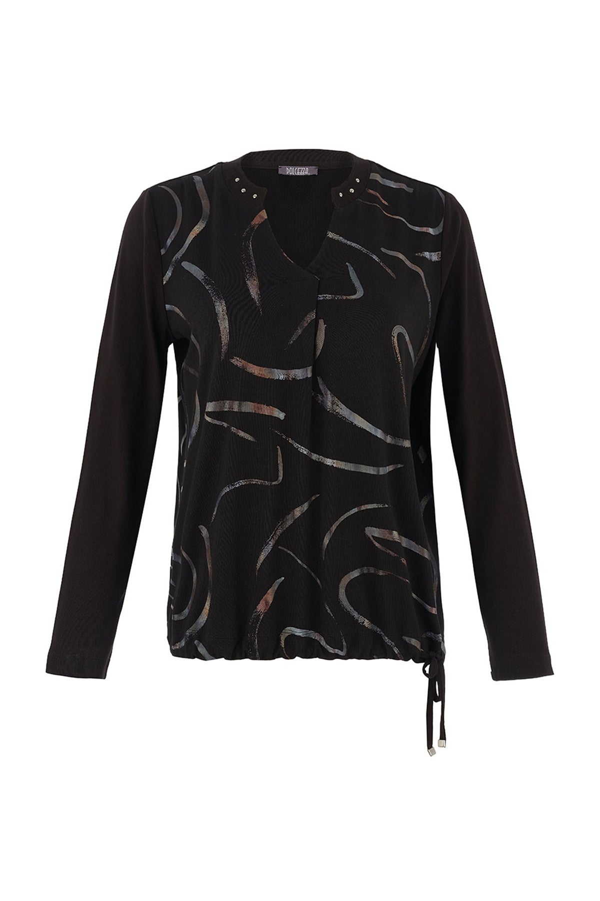 The Dancing in the Dark Split Neck Tie Waist Top steals the spotlight with its sparkly split v-neck and playful front tie string. Its light, loose fit offers a flattering flow, while the bold abstract print adds a splash of fun. Perfect for dressing up with sleek pants for a night out or keeping it casual with your favourite jeans. Get ready to turn heads wherever you go!