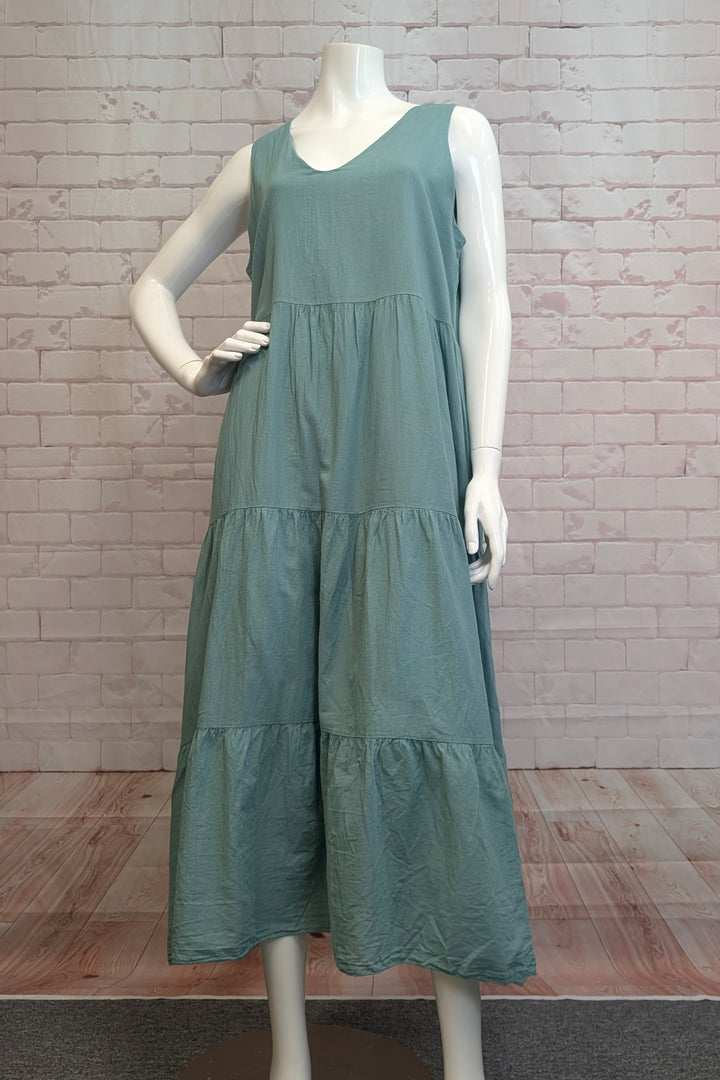 Stay cool and comfortable in our Cotton Sleeveless Tiered Dress. Made with 100% cotton, this house dress features a soft cut v-neck and a fun tiered design. Perfect for casual outings, this dress is nothing too fancy, but it's definitely nice and comfy.