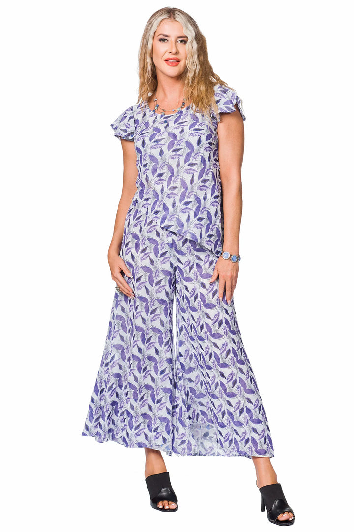 Introducing our versatile Purple Reversible Leaf Print Pant! Lightweight and super loose, flowy, this wide leg design doubles as a skirt pant. With a light floral print and summer-ready style, you can wear it two ways for endless options. Embrace the season and stay cool in this must-have piece. Pair it with the matching top for a complete ensemble!