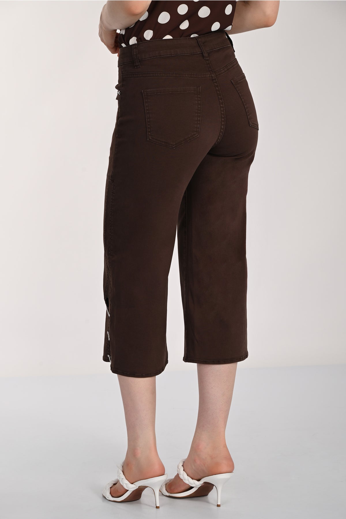 Elevate your everyday style with these cropped jeans designed for versatile sophistication. Featuring a flattering stretch fit that moves with you, these jeans showcase a distinctive ladder hem detail along with rhinestones up along the pockets for an unexpected touch of glamour. The neat contrasting design adds visual interest while the cropped length keeps the silhouette modern and refined. Perfect for pairing with a crisp blouse and tailored jacket, these jeans bridge the gap between casual comfort and polished elegance—ideal for smart casual occasions that demand a little extra sparkle!