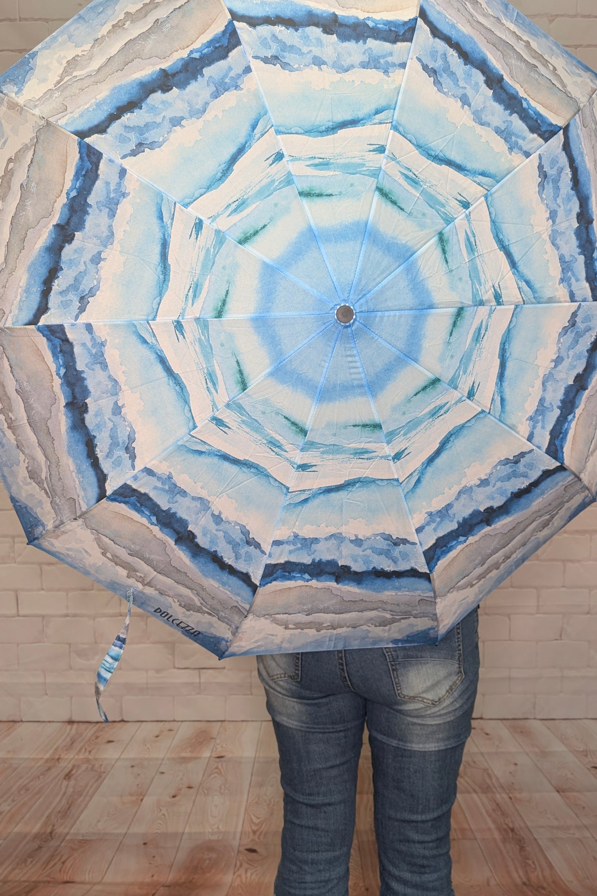 Perfect for those unpredictable spring showers, this watercolour seascape umbrella combines practical protection with artistic flair. Crafted with sturdy construction, it's built to withstand wind and rain while making a stylish statement. The beautiful seascape print brings a touch of coastal charm to grey days. Includes a convenient carrying case for easy transport. An exclusive find right here!