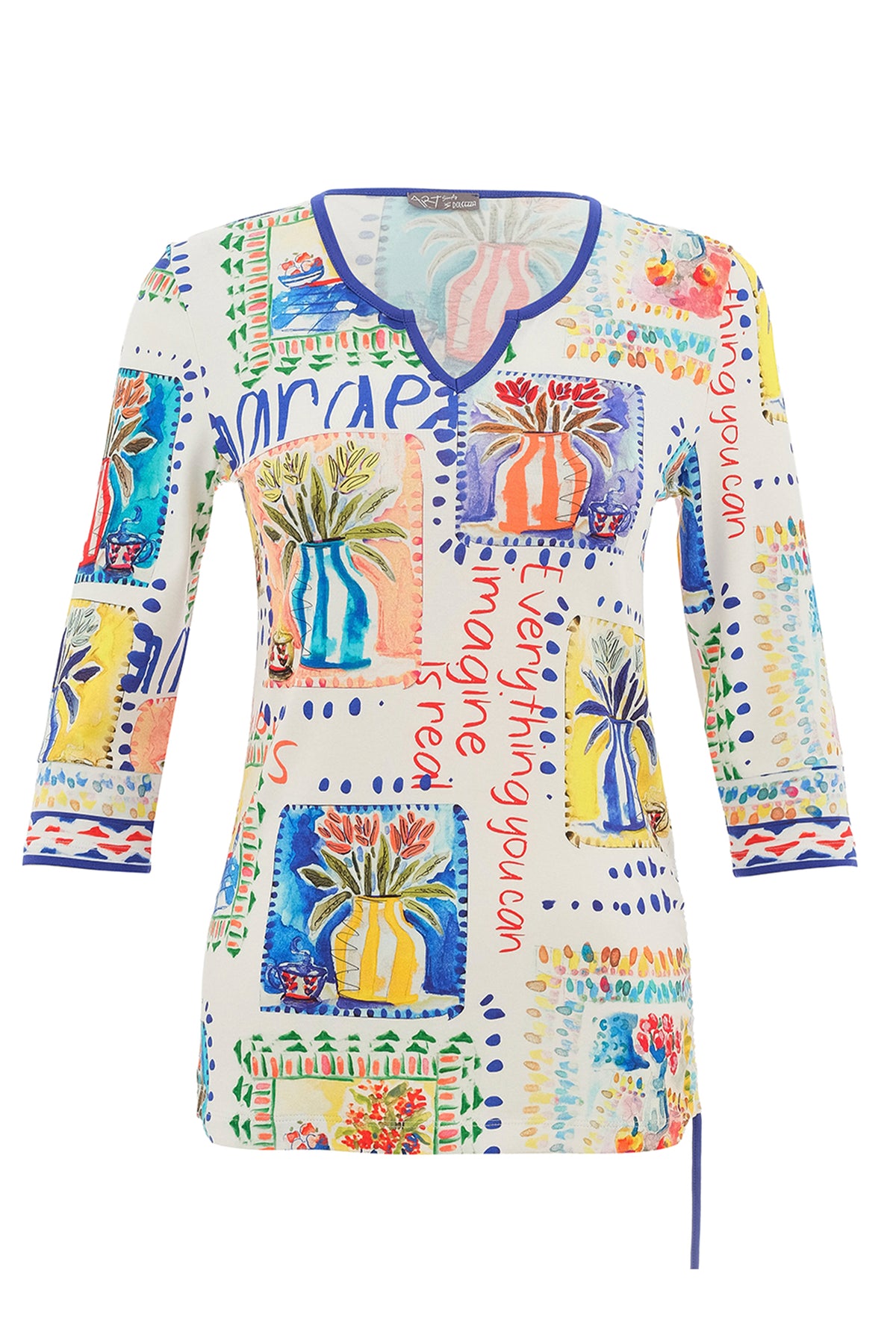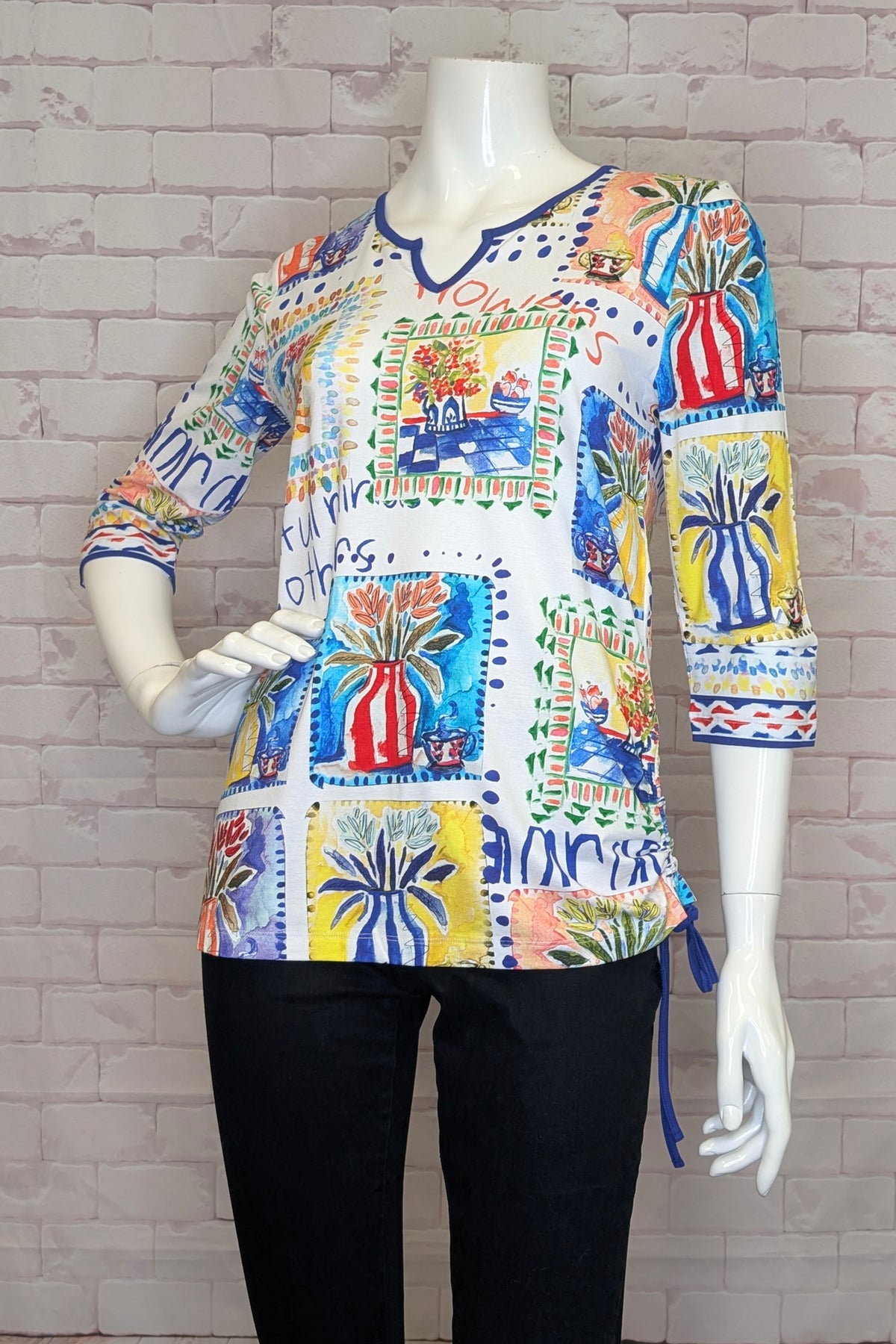 MY HANDMADE GARDEN 3/4 SLEEVE SPLIT NECK TOP